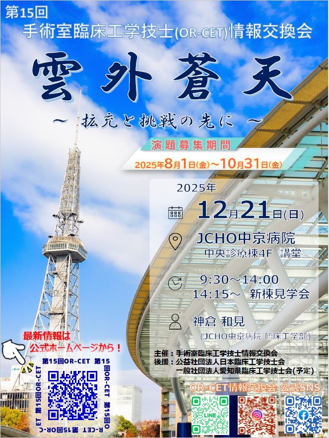 HOME > 講習会・セミナー > その他セミナー > 第15回手術室臨床工学技士(OR-CET)情報交換会 2025年9月22日 第15回手術室臨床工学技士(OR-CET)情報交換会.pdf Post Share LINE