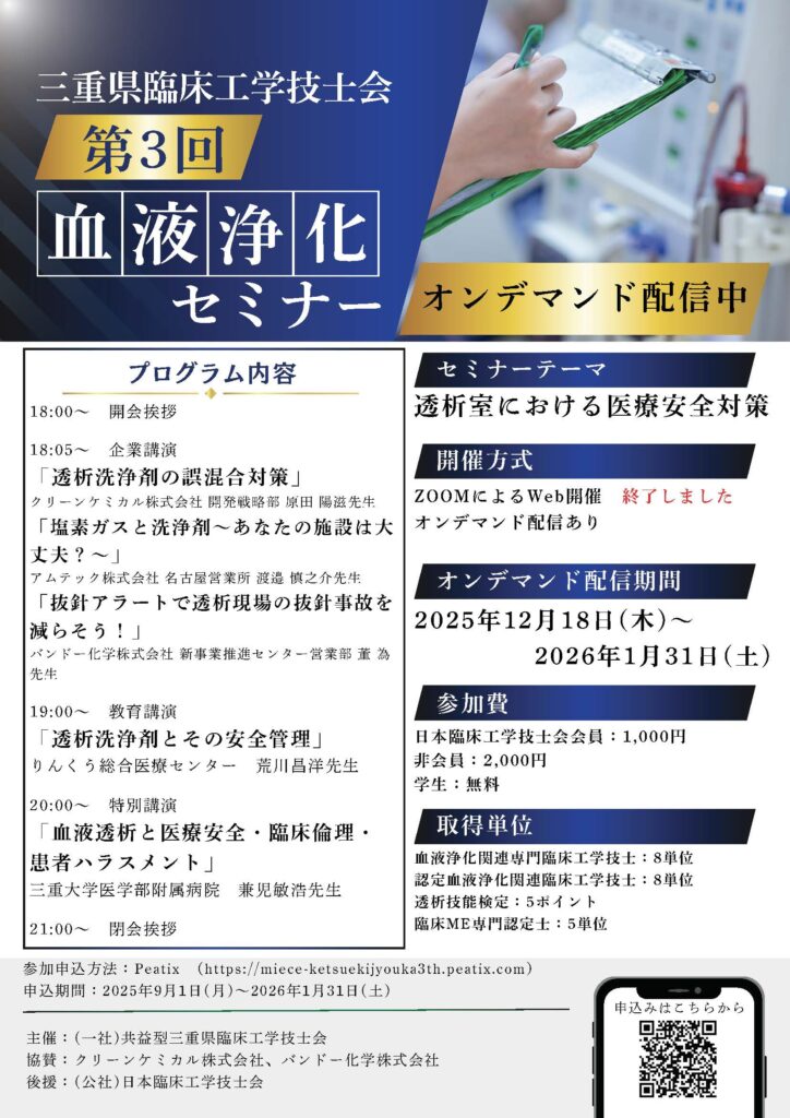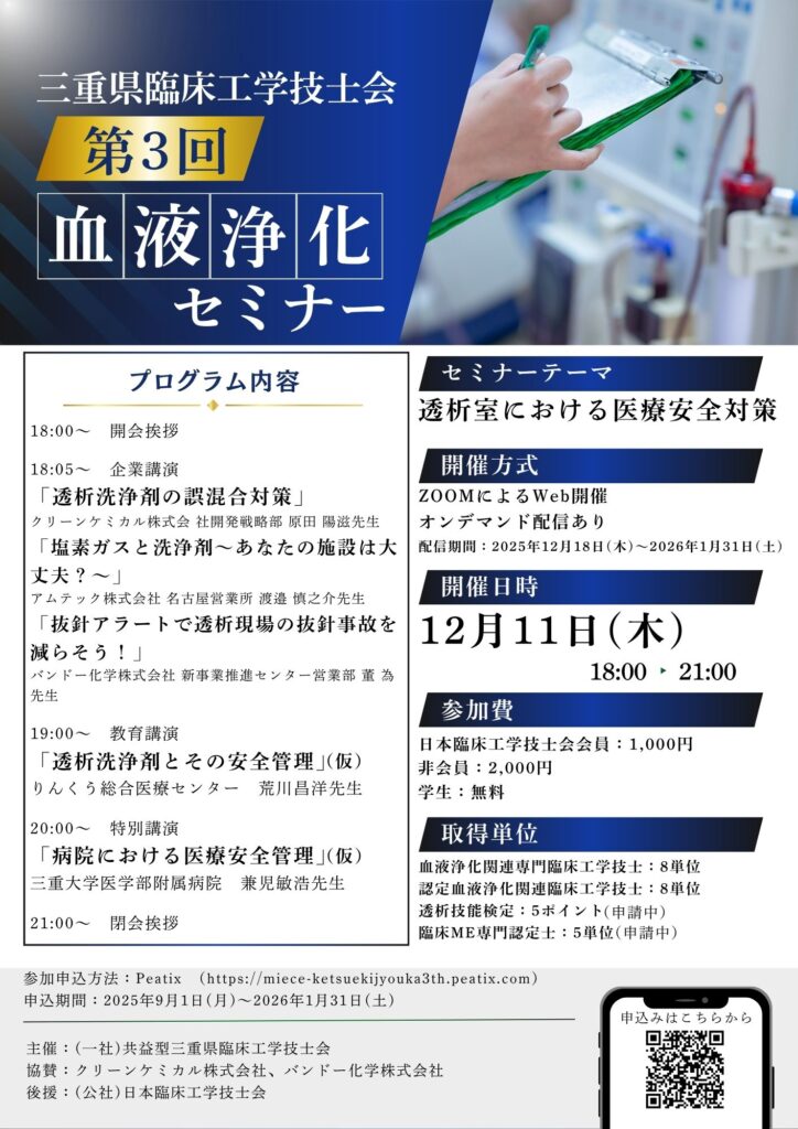 HOME > 講習会・セミナー > 三重県 CEセミナー > 三重県CEセミナー記事スライド用 > 第3回血液浄化セミナー 2025年8月20日 第3回血液浄化セミナー.pdf Post Share LINE