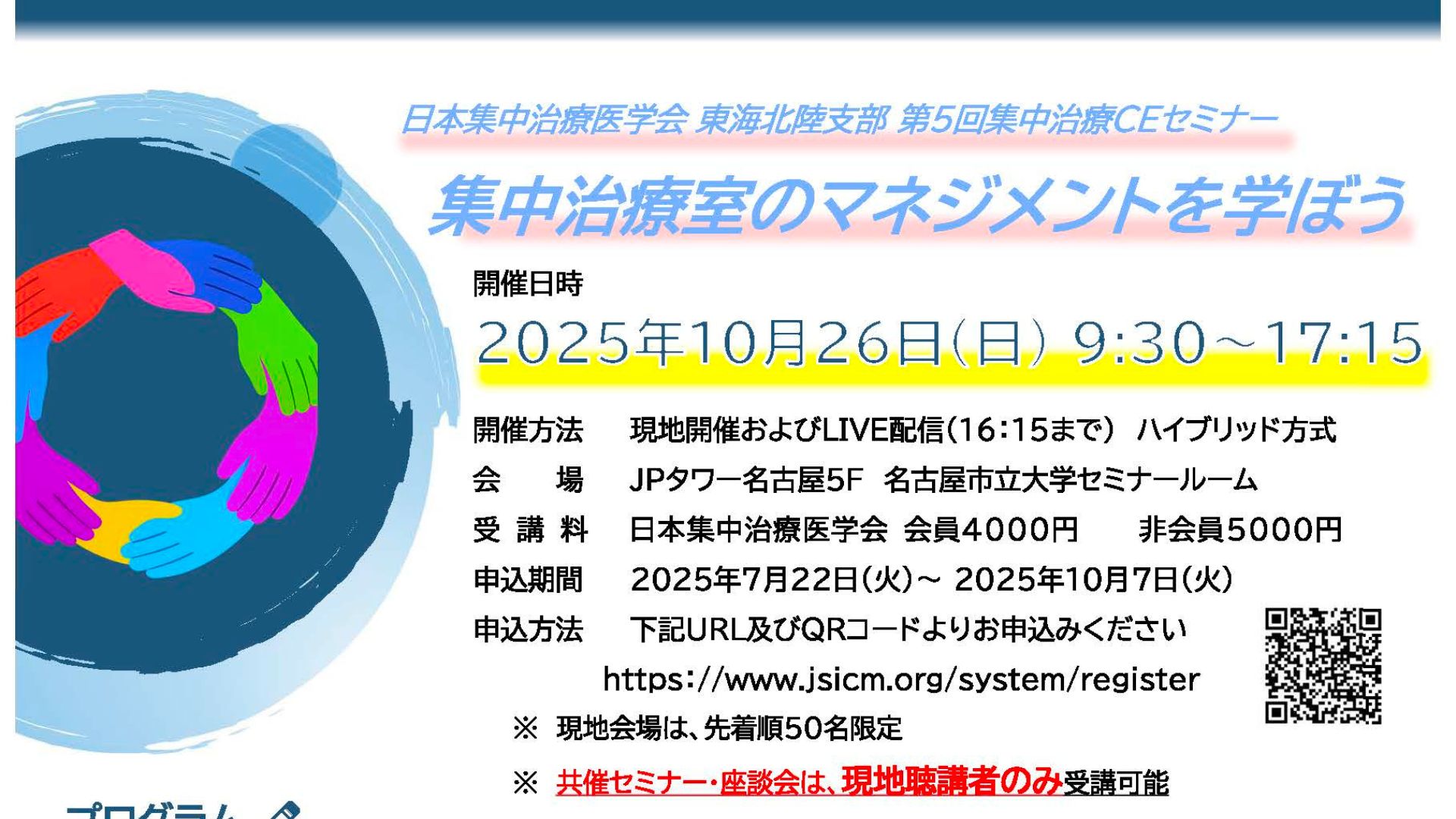 日本集中治療医学会 東海北陸支部 第5回集中治療CEセミナー